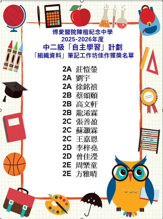 2025-2026年度 中一及中二級班際「筆記做得好」比賽 獲獎名單 |