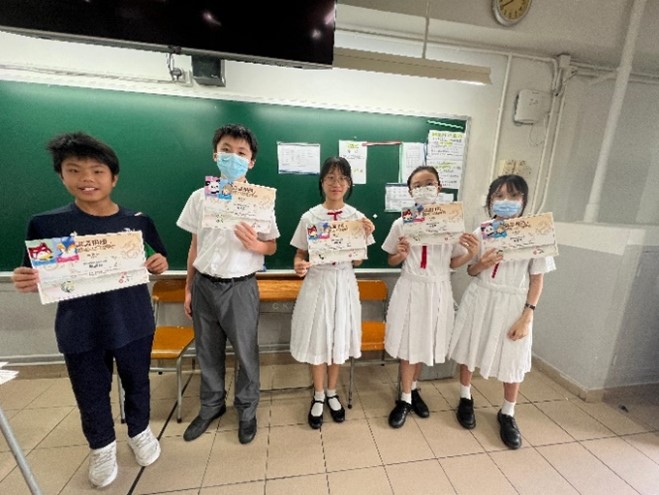陳卓霆(1A)、陳廷翰(1A)、楊子康(1A)、俞俊熙(1A)、陳浩銘(1B)、陳秀甄(1B)、黃雅盈(1B)、梁天嵐(1C)、馬嘉瑩(1C)、岑碧桐(1C)、馮願熹(1D)、徐子淇(1D)、馬天維(2A)、謝愷琳(2A)、陳芷悠(2B)、梁晞兒(2B)、陸善儀(2B)、伍子謙(2C)、陳彦霖(2D)、鄺子鋒(3A)、梁詠嘉(3B)、劉本瑆(4A)、林心萍(5A)、郭穎心(5C) |