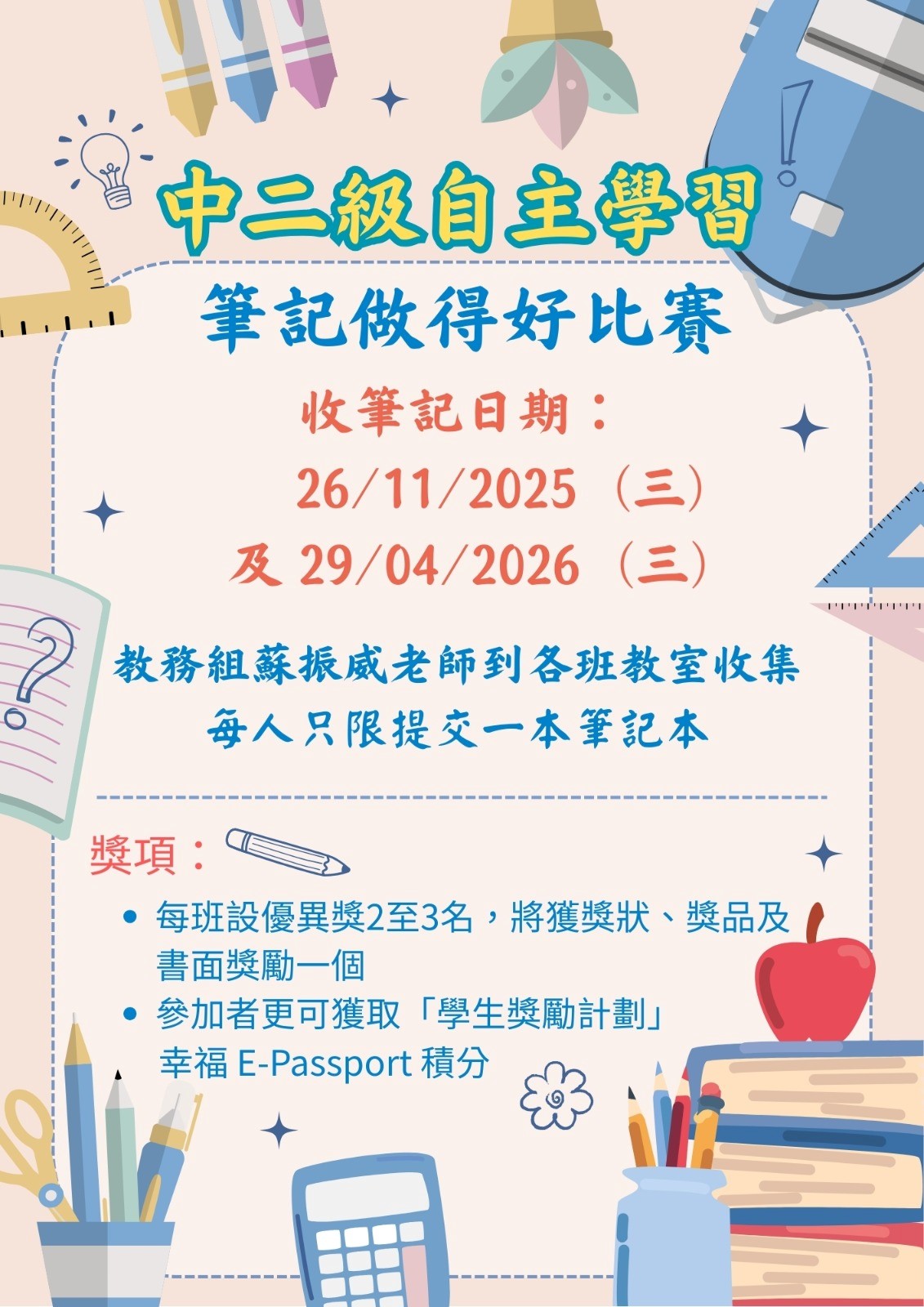 2025-2026年度 中一及中二級「筆記做得好」比賽 |